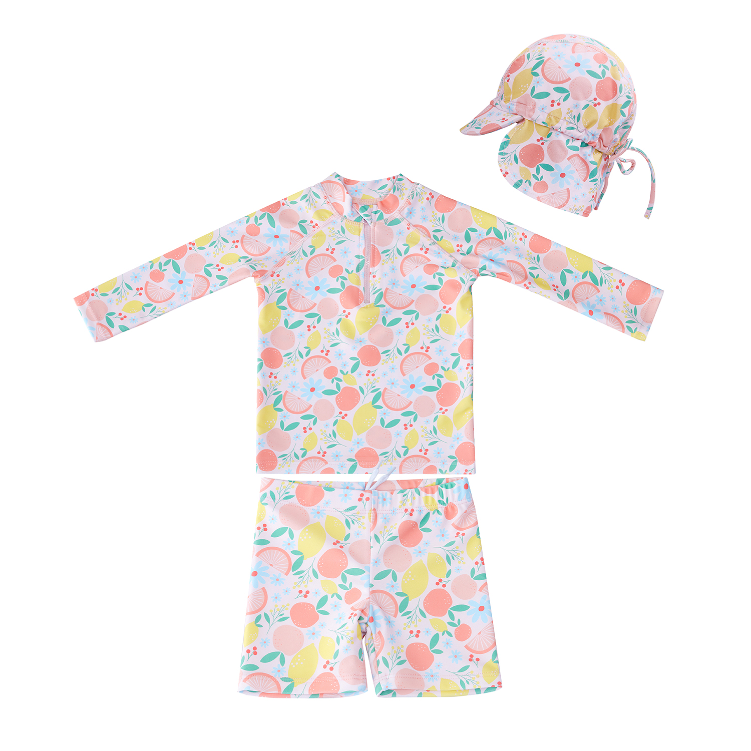 Big Softies 3 PC Long Sleeve Rashie, Shorts & Hat-Fruits